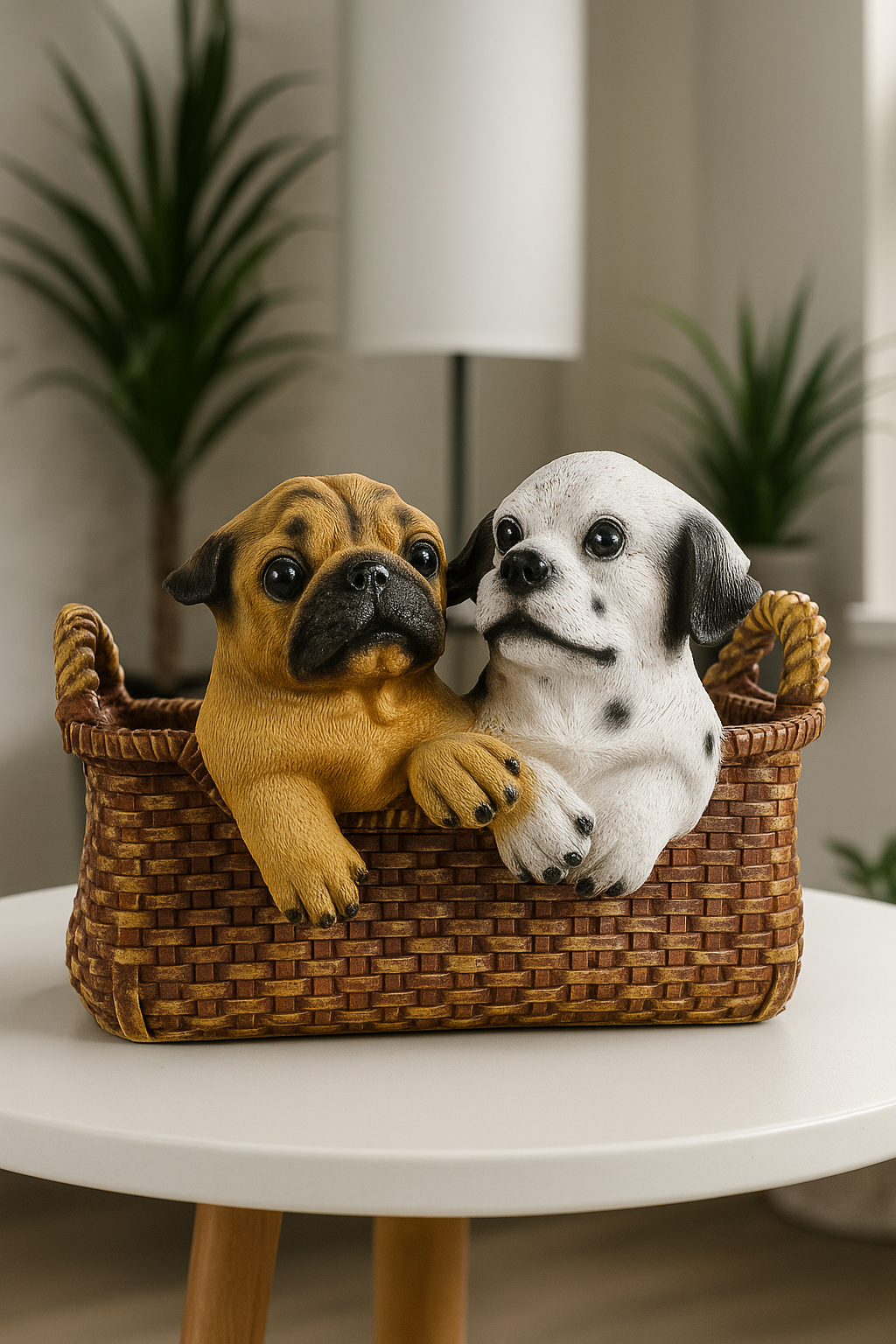 Cute Puppy Figurines in Basket – Decorative Showpiece perfect for luxury decor styling.