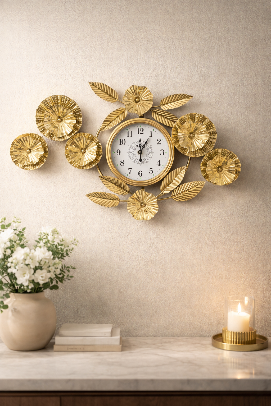 Golden Floral Decorative Wall Clock