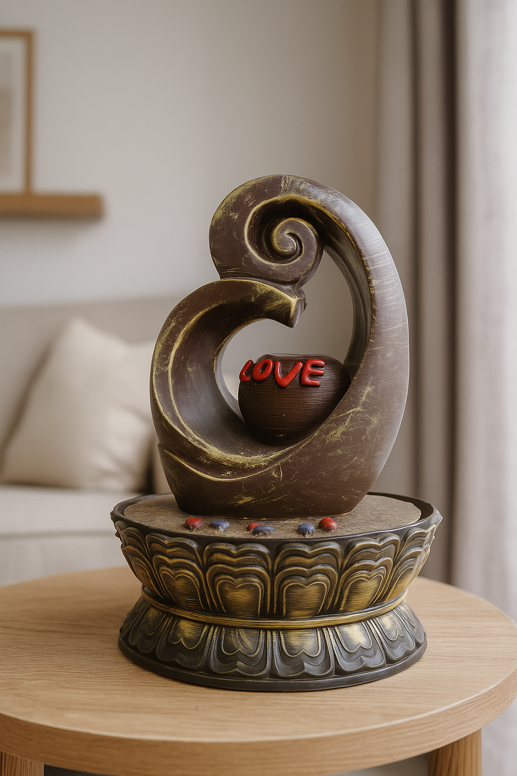 Love Sculpture Water Fountain – Brown Finish perfect for luxury decor styling.