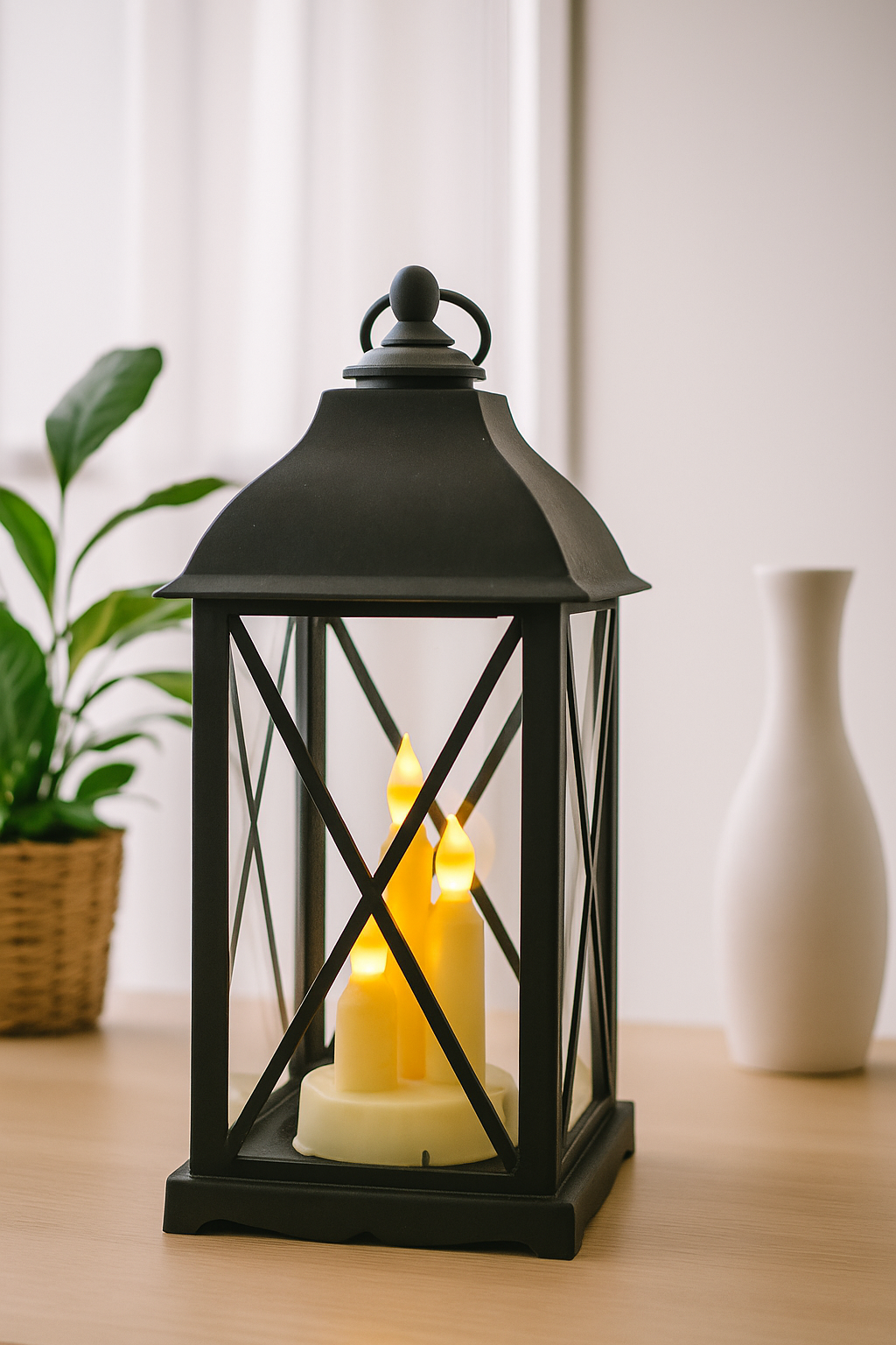 Modern Black Lantern with LED Candle
